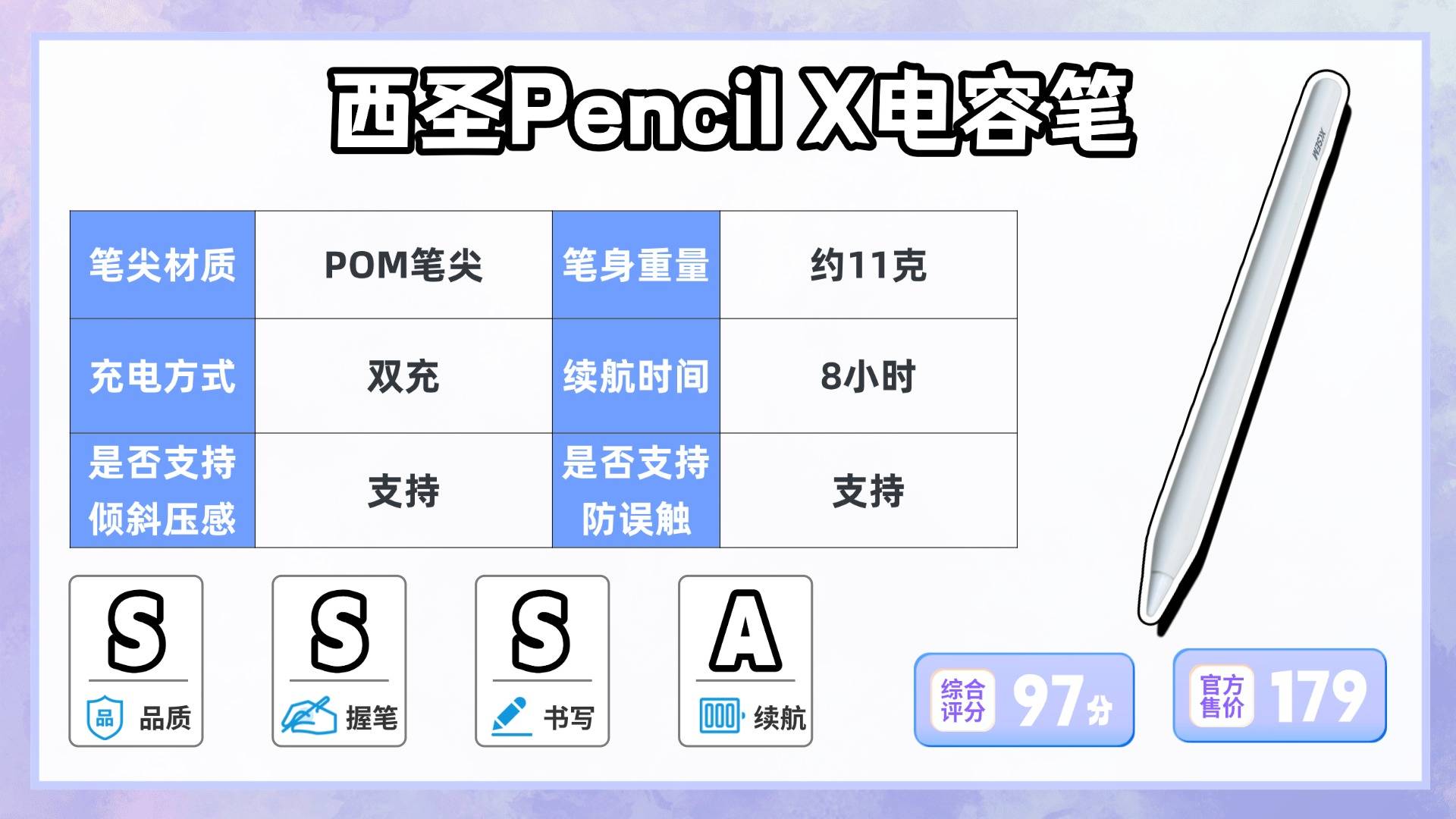 整体来看,如果你的需求集中在:书写顺滑、握持舒适、续航可靠,那么这款西圣带充电仓的电容笔基本可以“一次到位”。它的整体体验完整度很高,在同价位产品里属于非常稳妥的选择。
