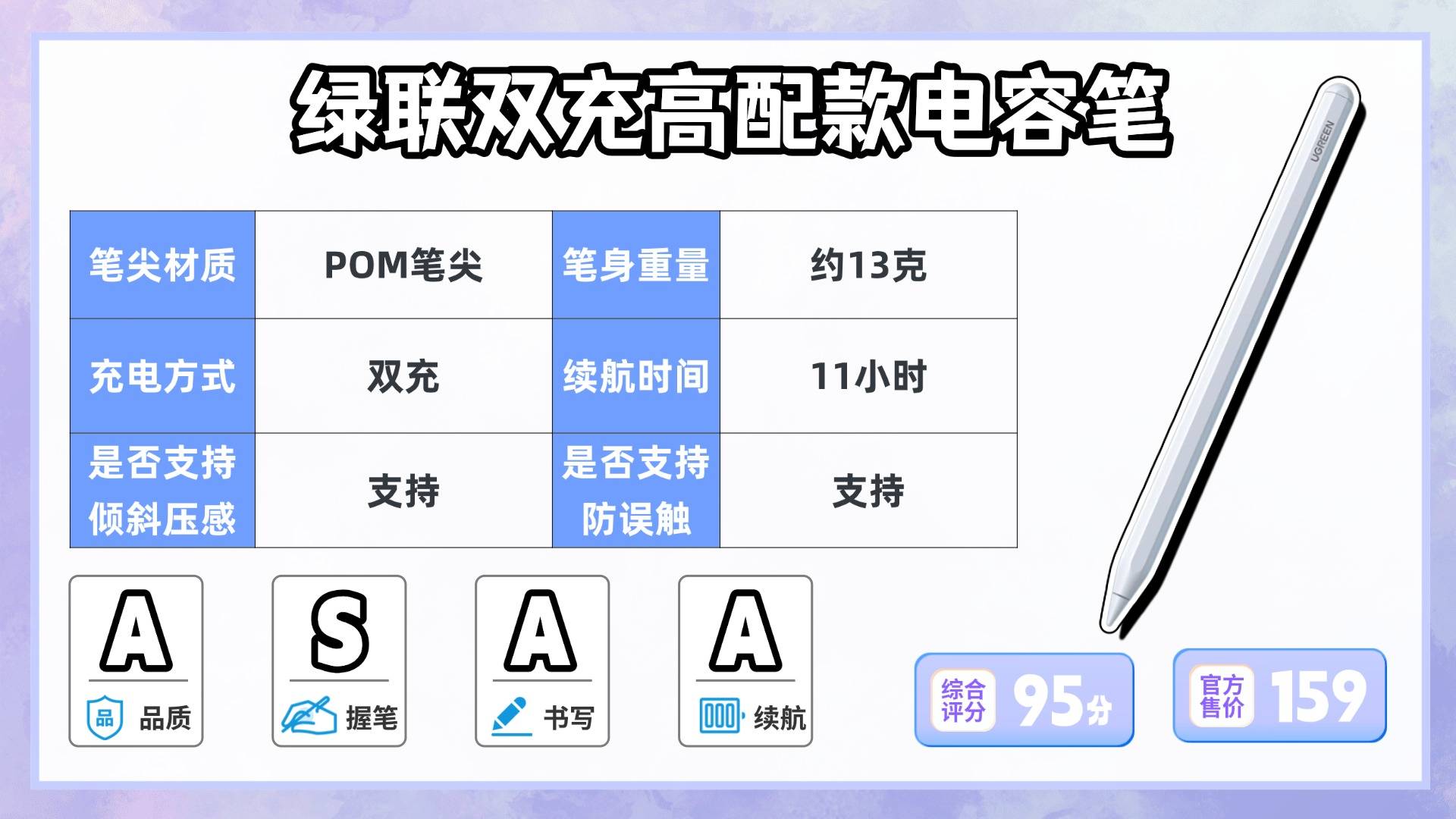 推荐理由:平替电容笔领域口碑最好的品牌之一,在同价位产品里属于非常稳妥的选择!