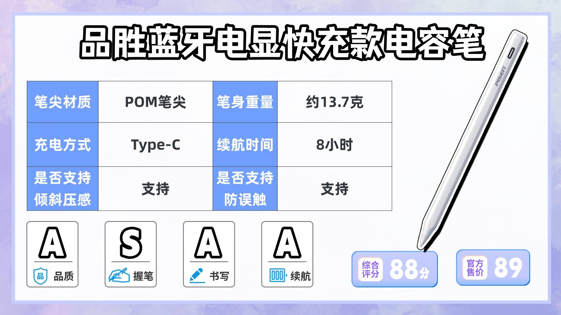 推荐五:品-胜蓝牙电显快充款电容笔