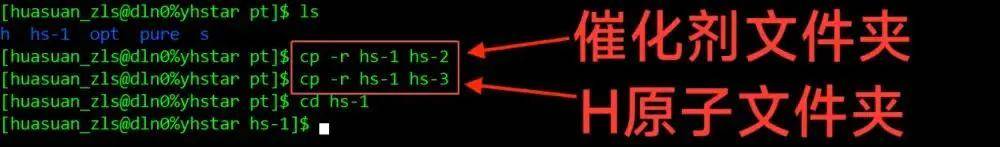 前面已经做了H吸附的结构优化这个 h 文件夹,那需要把整体的电荷算一下,再把催化剂和这个氢拆开,各自的电荷算一下,用整体的电荷减去各自的电荷,那么就得到差分电荷,也就是界面处的电荷转移情况。把 h 变成 hs-1,这是算整体的电荷,然后再把 CONTCAR变成POSCAR结构保留下来,修改一下INCAR,执行自洽计算,保存,提交任务。接下来把催化剂拆成Pt和H,把 hs-1 变成 hs-2,这个先做Pt的,再把它变成hs-3 是做 H 的,到这个 hs-2 里面修改POSCAR,把H原子删除,提交任务,再去到 hs-3 修改POSCAR,这个时候把Pt原子删除,只留下一个氢原子。