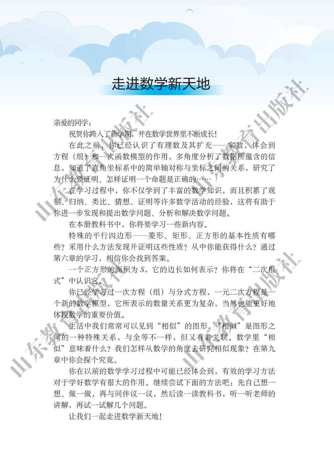 2026年春季初二学生部分科目将迎来新版教材,新版教材特别强调知识之间的联系和实际生活中的应用!为方便广大初中生更好地了解新教材内容,我们特别整理了2026春季新教材鲁教版八年级数学下册电子课本,以图片的形式呈现给大家。