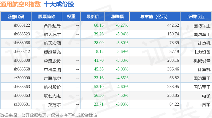 通用航空R(480076)指数十大成份股详情如下: