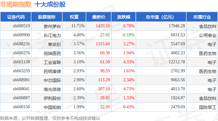 非周期(000064)指数十大成份股详情如下: