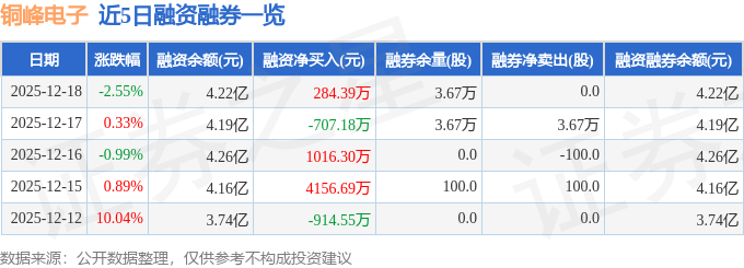 铜峰电子融资融券信息显示,融资方面,当日融资买入5156.11万元,融资偿还4871.72万元,融资净买入284.39万元。融券方面,融券卖出0.0股,融券偿还0.0股,融券余量3.67万股,融券余额32.22万元。融资融券余额4.22亿元。