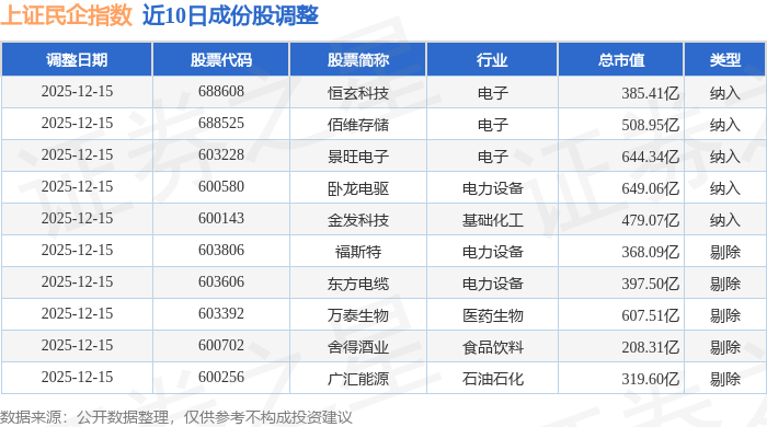 近10日内上证民企(000049)指数成份股做了调整,新纳入了5只股票,剔除了5只股票。