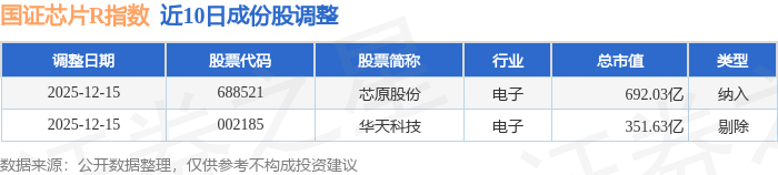 近10日内国证芯片R(480017)指数成份股做了调整,新纳入了1只股票,剔除了1只股票。