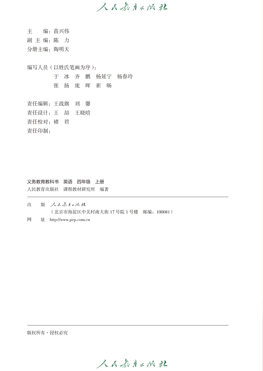 人教精通版四年级英语上册电子课本图片版在线阅读