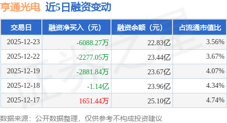 证券之星消息,12月23日,亨通光电(600487)融资买入5.64亿元,融资偿还6.25亿元,融资净卖出6088.27万元,融资余额22.83亿元。