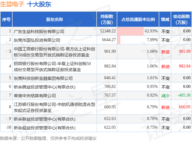 根据生益电子2025年三季报公布的十大股东详情如下: