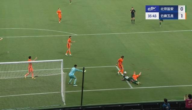 直播吧06月30日讯 中超第16轮,北京国安vs云南玉昆。比赛第33分钟,法比奥突入禁区被放倒,裁判指向点球点。VAR介入后,主裁到场边回看,最终取消点球判罚。
