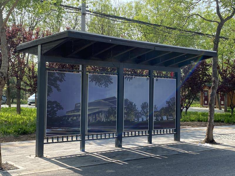 4月16日,位于北京市通州区唐大庄村委会旁的全彩光电公交站亭。(中国资环集团供图)