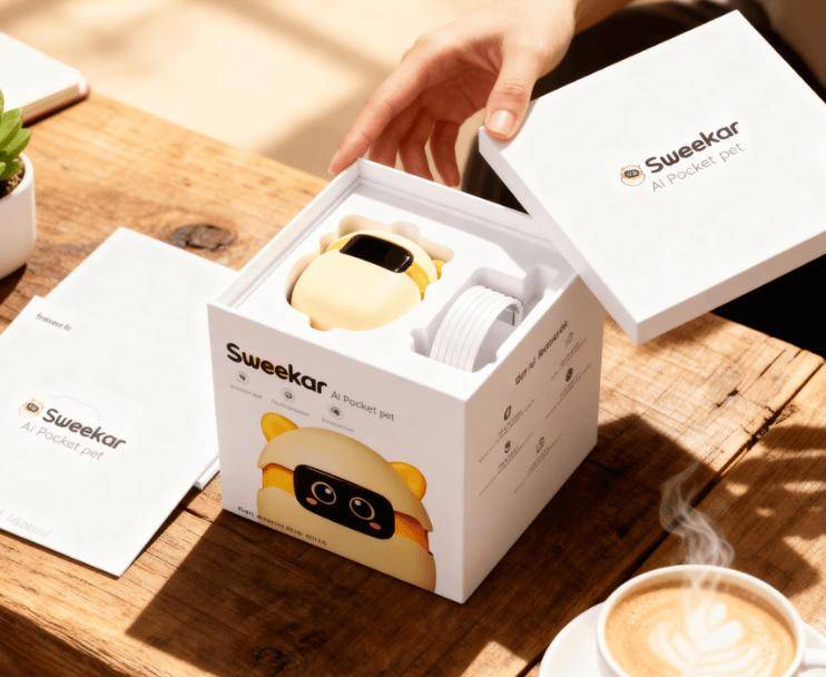 Sweekar 是一款内置 AI 的掌心大小玩具宠物,外形是一个可爱的蛋形设备,有耳朵和一个屏幕作为面部。