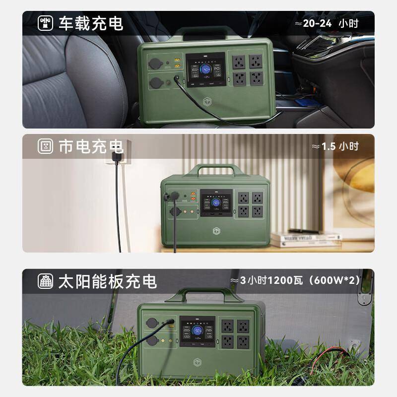 充电方式:支持市电、车充、太阳能板三种充电方式。市电充满约6-8小时,车充约10-12小时,搭配太阳能板可实现离网充电。