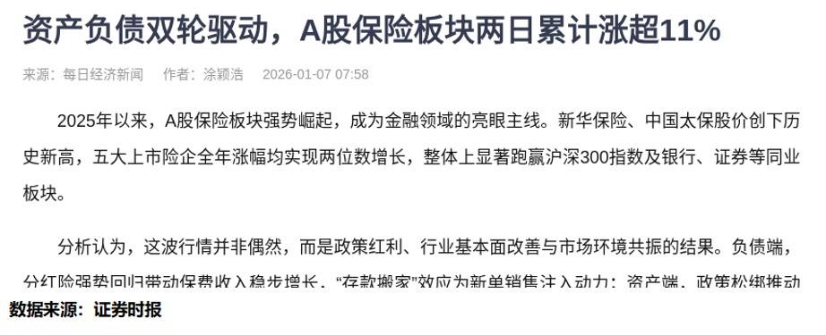 2025年至今A股保险板块成了金融圈的“黑马”——新华保险、中国太保股价创历史新高,五大上市险企全年涨幅都超两位数,比沪深300和银行、证券板块强出一大截。2026开年这波“开门红”更猛,1月5-6号两天保险板块就涨了11%。有人问这波涨势能不能持续?其实不用光盯着消息面,从机构交易行为的角度看,好股票涨之前都有个“必经步骤”——机构要先“洗盘”,把浮筹清干净,之后才能涨得更稳。