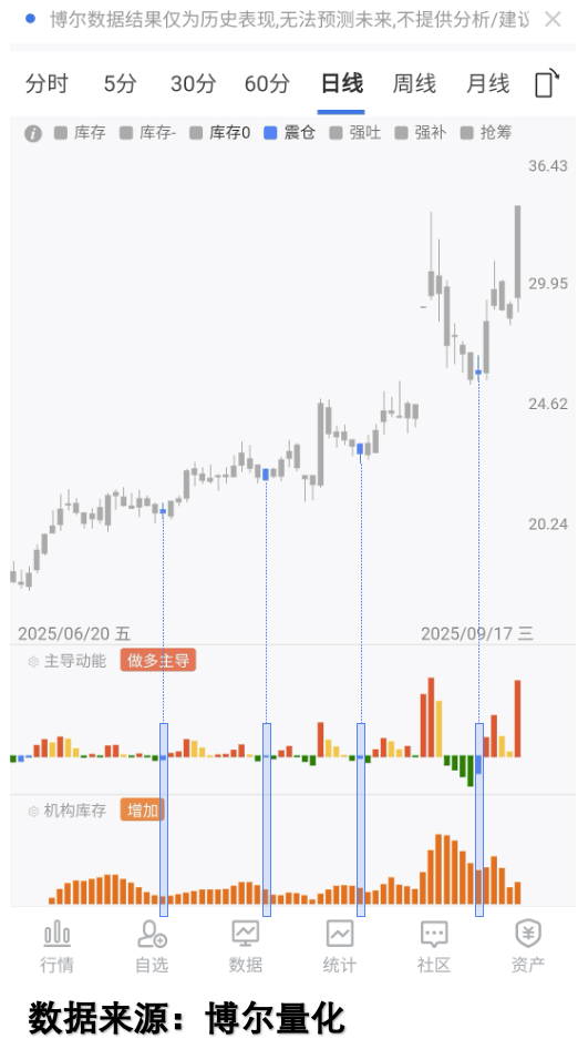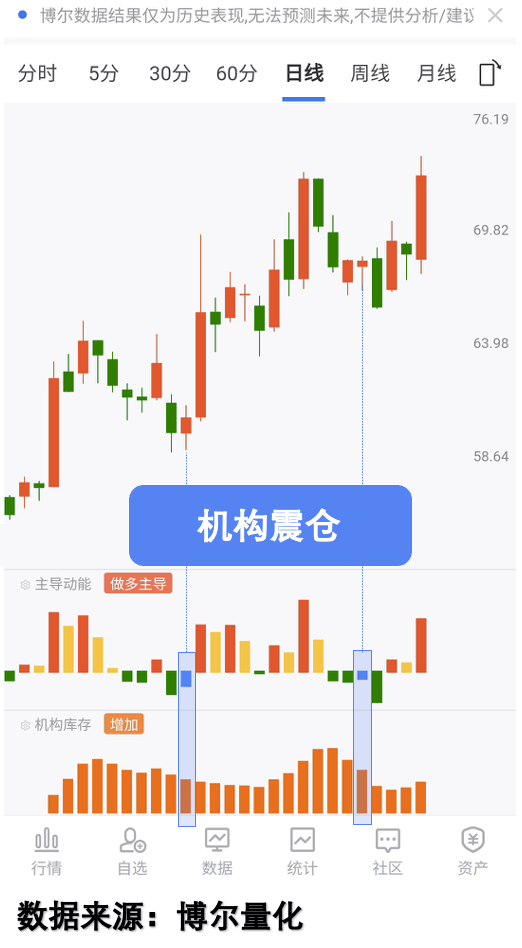 就像下面这只保险股,回头看涨势惊人,可当时中途震荡得厉害,很多人怕跌就卖了。但用量化数据看,震荡期里出现了蓝色“回补”柱体,同时橙色机构柱体一直没断(看图1)——这说明机构不是在跑,反而在“补仓拿筹码”,就是咱们常说的“震仓洗盘”。等洗得差不多了,股价直接冲上去。