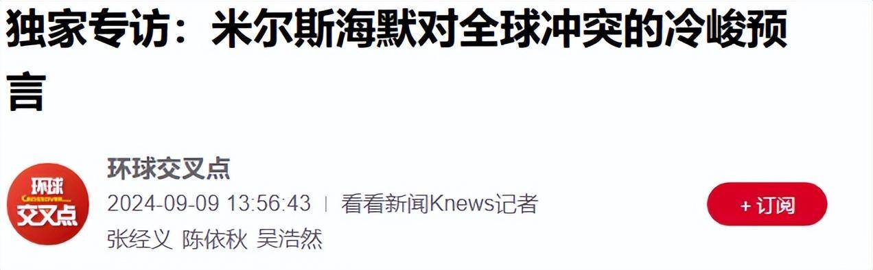 2024年8月,芝加哥大学国际关系学教授约翰·米尔斯海默(John J. Mearsheimer)接受采访被问及“中美关系”方面时依旧坚持他的立场,他表示,中国已经不再是国际体系中的弱国,美国对中国崛起的担忧不可避免地导致了遏制策略的出台,“在可预见的未来,这种情况还会继续。”在他看来,只要中美两国继续沿着当前的轨迹发展,冲突几乎不可避免。他称之为“大国政治的悲剧”,这也是他那本具有前瞻性的著作的核心内容。