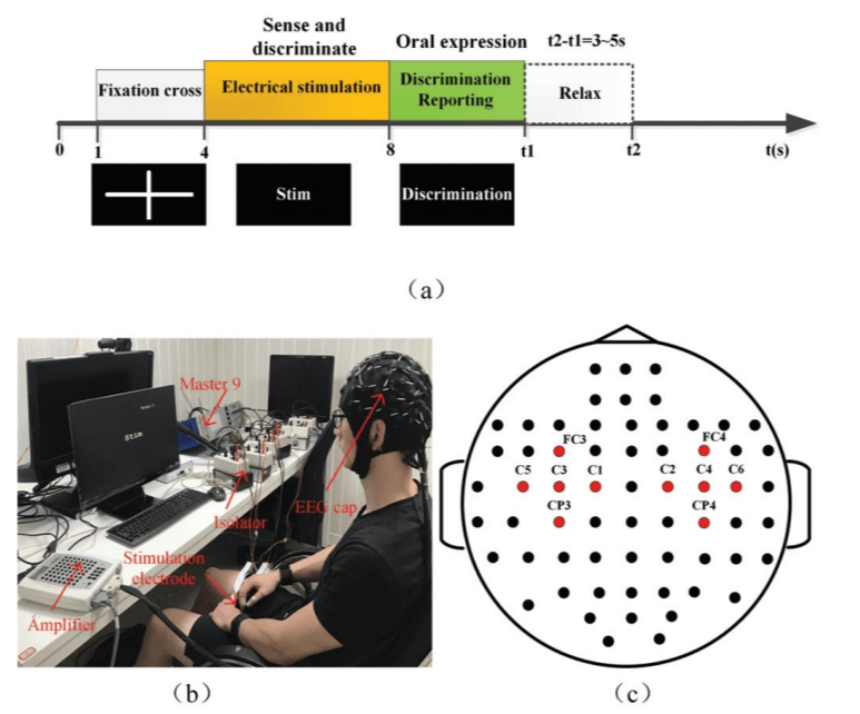 感觉能力的评估对于恢复缺失的感觉功能具有重要意义。对于截肢者而言,感觉能力评估可用于旨在改善残肢侧感觉能力的训练阶段。对于脑卒中患者,感觉能力评估也可作为脑损伤的指标。学界已投入大量努力探索感觉能力评估方法,然而现有研究主要依赖问卷和视觉模拟量表,这些方法受个体主观影响,无法客观表征大脑的感觉响应。因此,寻找客观的感觉能力评估指标仍是重要挑战。