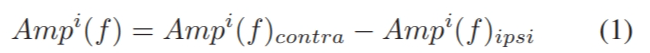 随后,在特定刺激频率下,左右手刺激之间的大脑响应差异被定义为: