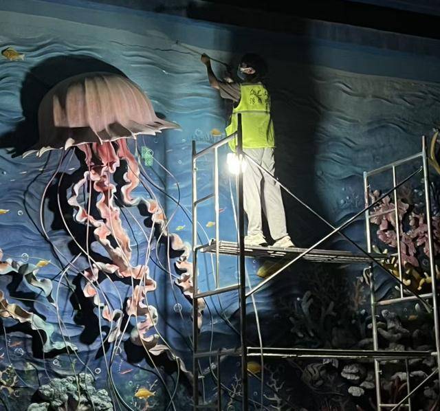 这条视频阅读量突破百万,成功破圈,也让更多人了解到,浮雕壁画不只是涂个腻子就可以的,而是有画线条初稿、电焊造型、安装电焊骨架、搅拌腻子、做背景浮雕、做主体造型、处理毛边、细节刻画、打磨上色等多个复杂步骤的专业工艺。