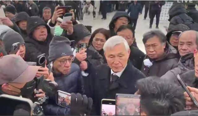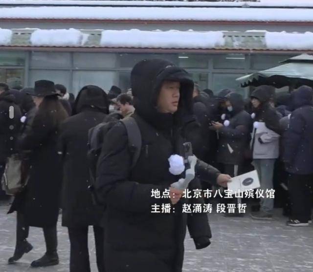 受限于规定,这些花圈无法移入大厅,只能静卧于冰天雪地之中,那黑白相间的肃穆色调与漫天飞舞的白雪相互映衬,构成了一幅令人肝肠寸断的凄美画卷。