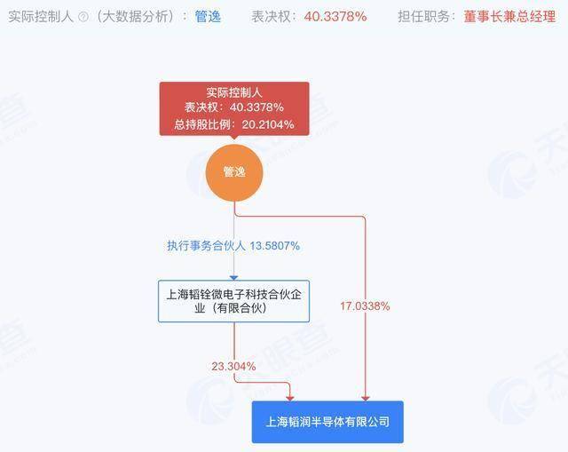 天眼查显示,韬润半导体实际控制人为管逸,总持股比例为20.21%,表决权为40.34%。目前。管逸担任公司董事长兼总经理。