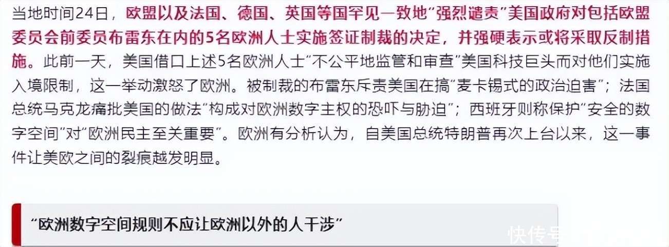 法国总统马克龙明确表示,美国的签证限制政策是对欧洲数字主权的粗暴侵犯;德国外交部长则痛斥美方从未真正尊重欧盟的独立地位;即便是长期作为跨大西洋桥梁的英国,也明确表示无法接受任何形式的单边胁迫。