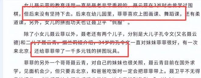 至于小女儿聂云菲,则是聂卫平晚年的宝贝。在父亲的宠爱下,她和两个哥哥也从未缺少爱与关怀。聂云菲这个名字,承载着父亲对她的深切期望,希望她能够聪慧美丽,清新而充满活力。