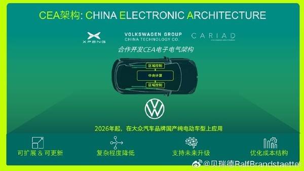 此次合作的核心是联合开发行业领先的电子电气架构。最初,该架构计划应用于大众在华生产的CMP和MEB纯电车型平台。随着合作的深入,双方在2025年8月进一步扩大了合作范围。根据新协议,联合开发的电子电气架构不仅将集成到大众在中国的纯电车型平台,还将部署至其在中国市场的燃油及插电混动车型平台。