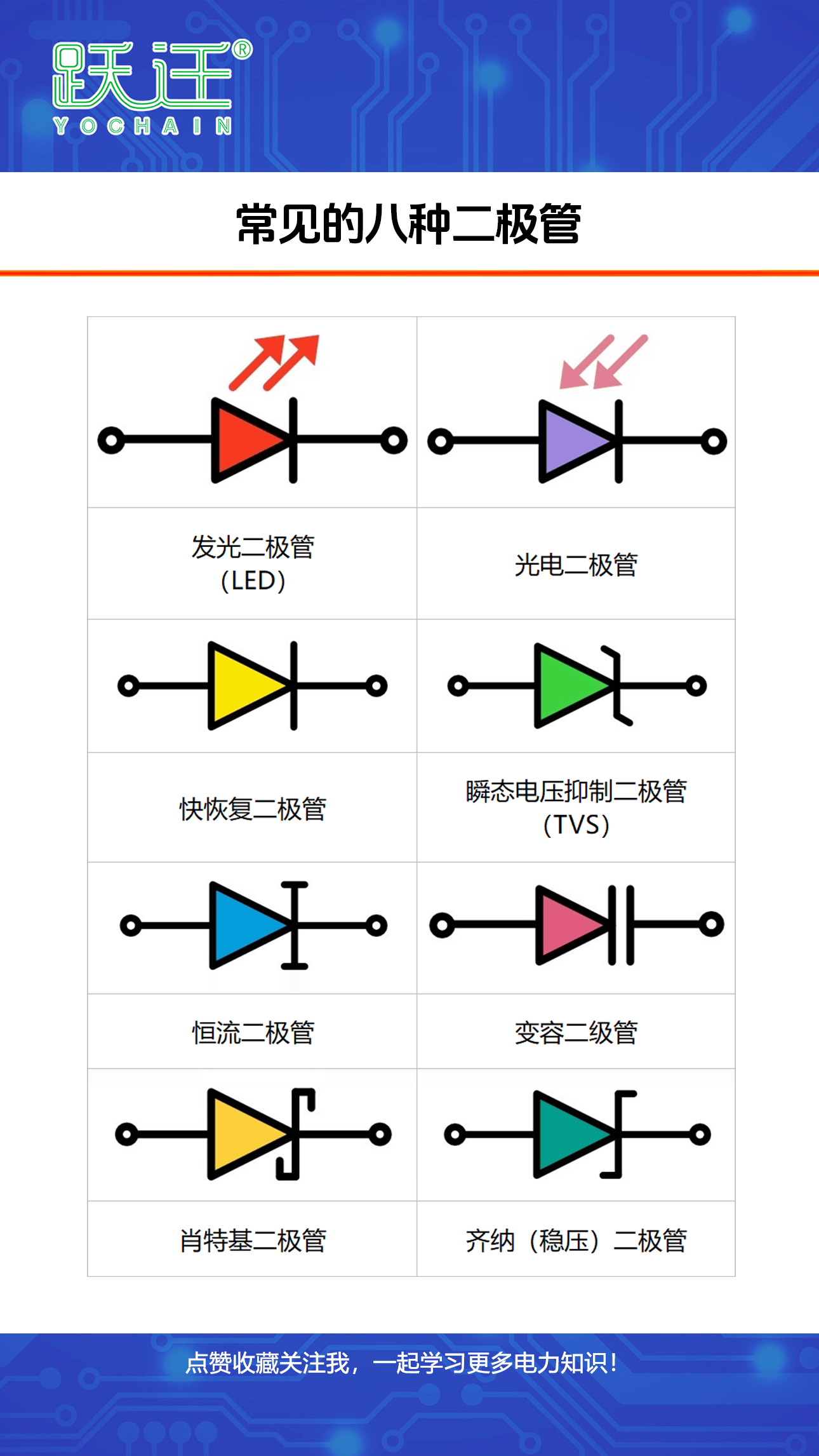 常见的八种二极管 #二极管 #发光二极管 #稳压二极管 #快恢复二极管 #肖特基二极管