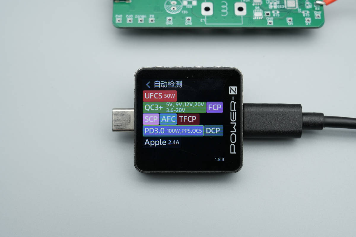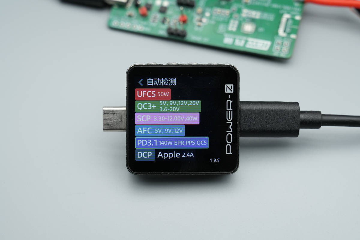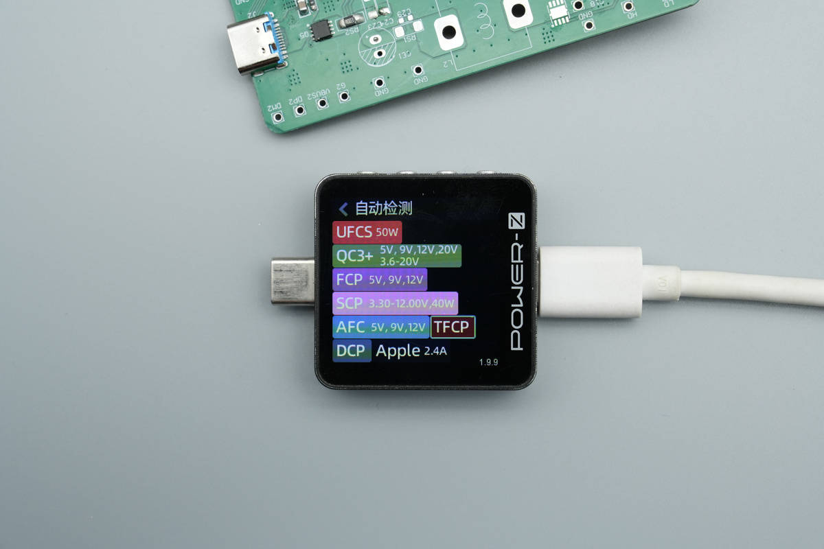 使用ChargerLAB POWER-Z KM003C测得该方案输出端C1接口支持UFCS、PD3.0、FCP、SCP、AFC、QC3+、DCP、AFC、Apple 2.4A等快充协议。