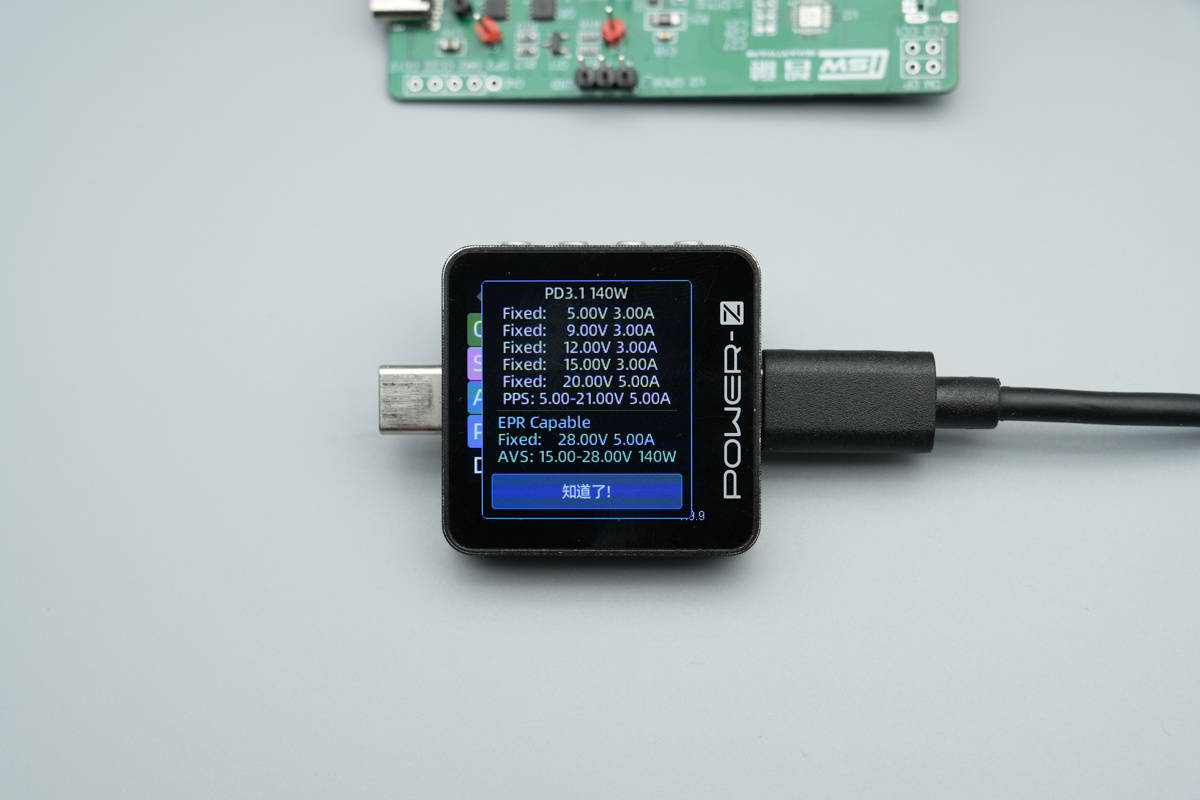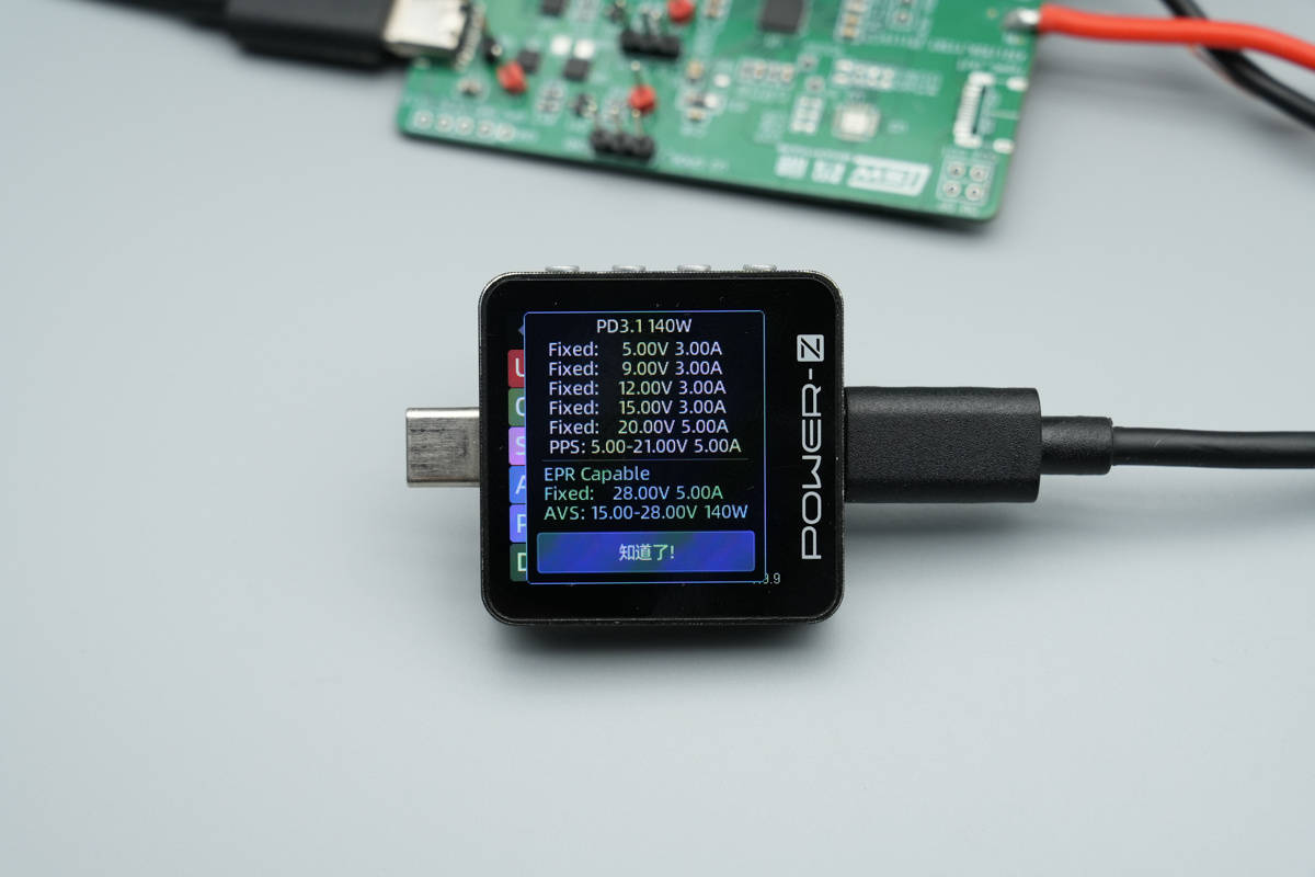 PDO报文方面,具备 5V/3A、9V/3A、12V/3A、15V/3A、20V/5A五组固定电压档位,支持5-21V/5A 一组PPS电压档位,支持AVS 15-28V 140W快充档位。