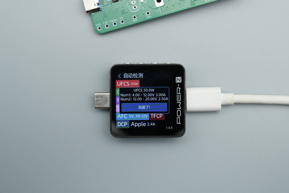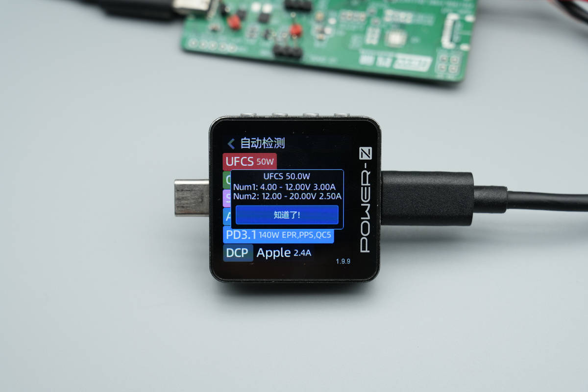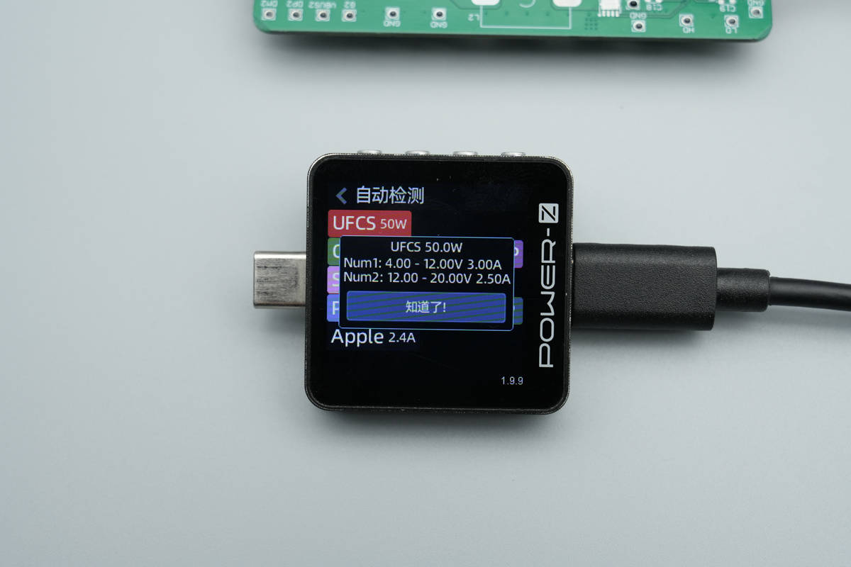 UFCS快充同样具备 4-12V3A和12-20V2.5A两组电压档位。