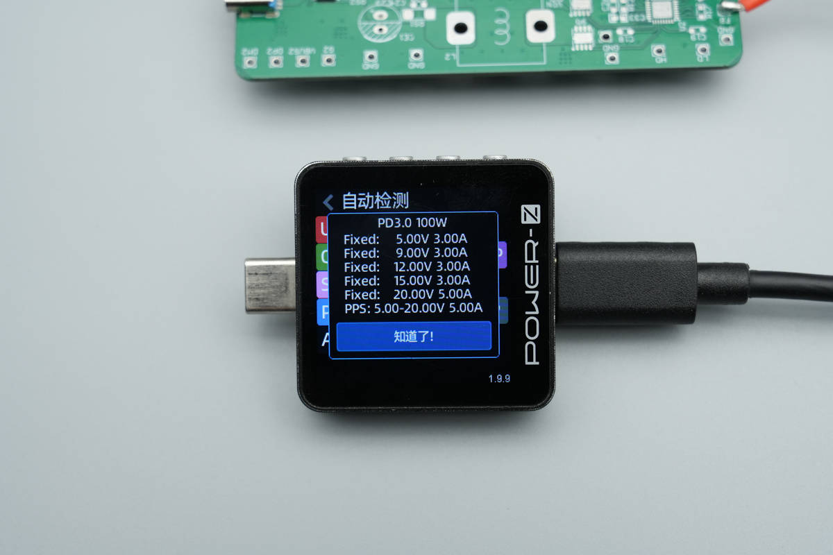 PDO报文方面, 具备 5V/3A、9V/3A、12V/3A、15V/3A、20V/5A五组固定电压档位,支持5-20V/5A 一组PPS电压档位。