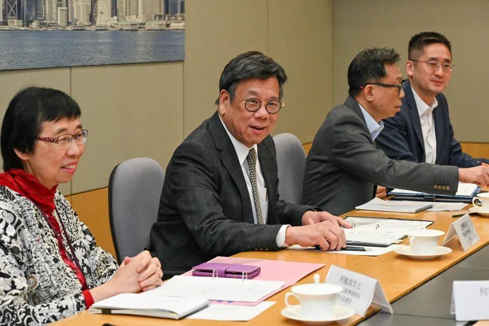 由商务及经济发展局局长丘应桦(左二)担任主席的“电子商贸发展专责小组”召开首次会议,展开统筹和制订电子商贸发展政策和措施的工作(图:香港特区政府新闻处)