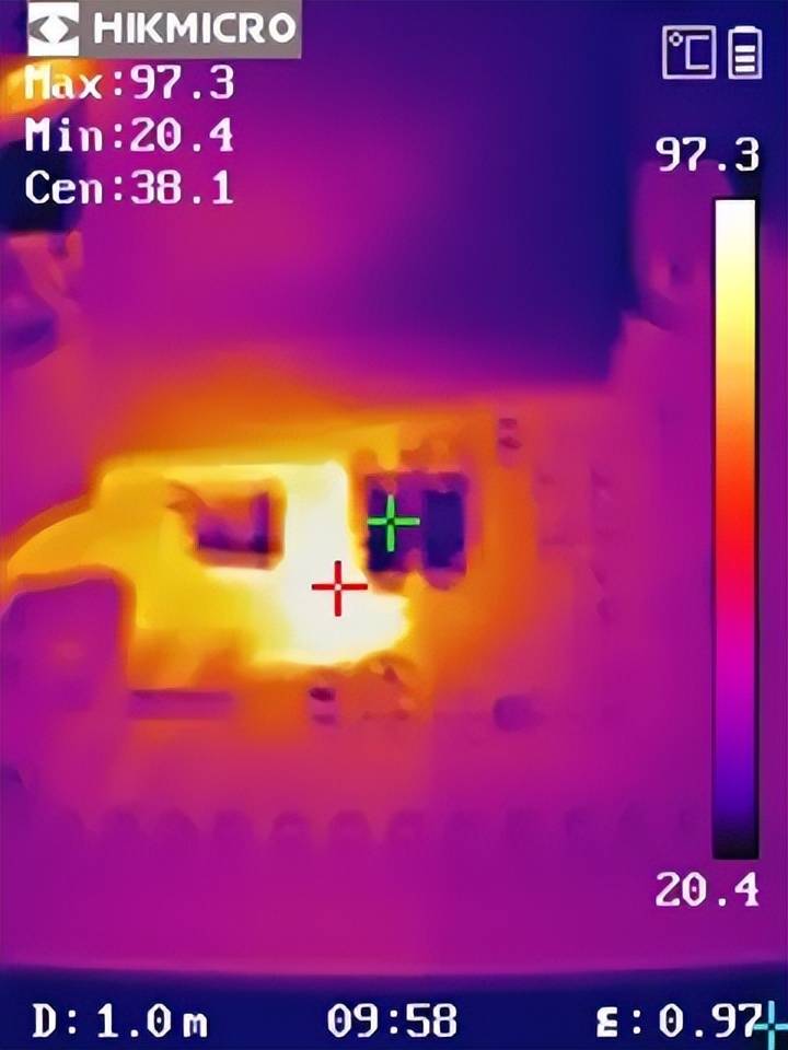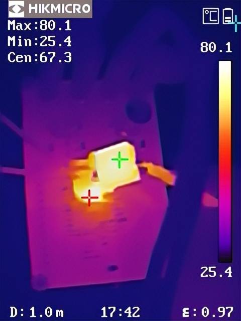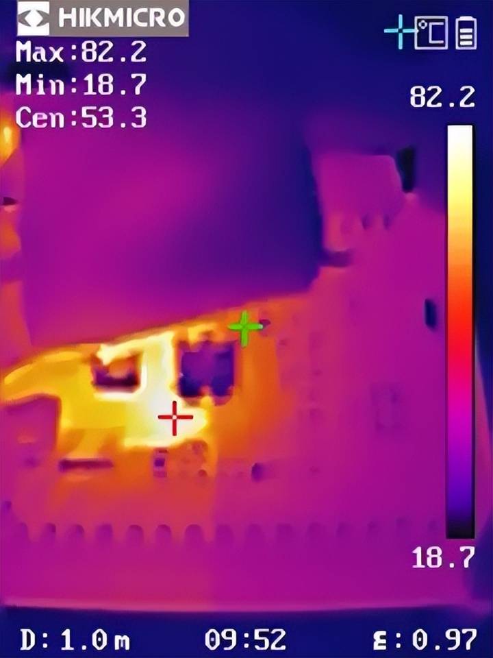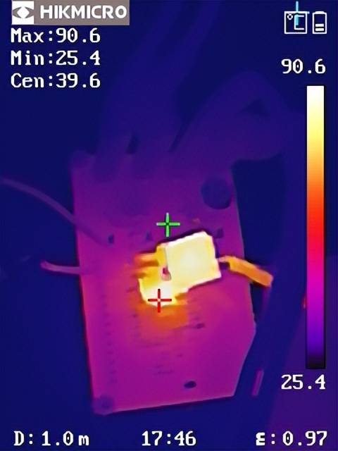 YX201052热成像图(VIN = 80V, VOUT = 12V, IOUT = 5A)