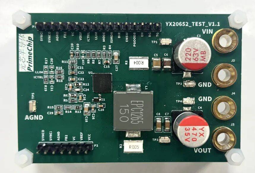 元芯半导体也基于YX20652/YX201052设计了DEMO板,凭借MOS管全集成化设计和并联错相功能,具备着相当优异的性能和高效的转换效率。这两款DEMO板不仅体积小巧,功率密度高,而且系统成本低,稳定性和可靠性高。
