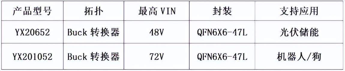 YX201052 支持可编程输出电流限制并提供 ISMON 电流传感,同时具备驱动电源轨 UVLO 保护与电源良好报告;芯片支持外部补偿与可编程软启动,同样采用QFN47封装,适用于光伏储能、消费电子、工业设备、汽车等领域。