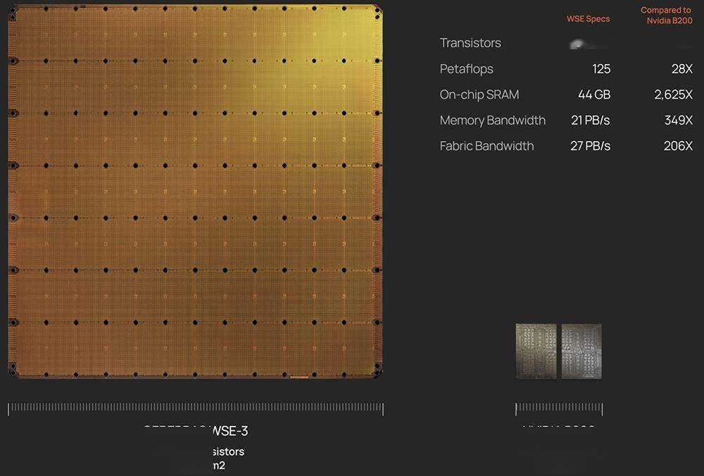 其芯片用于处理AI推理所需的顺序执行、内存密集型工作负载。与需要在芯片和内存之间来回传输数据的GPU不同,WSE将所有运算都保存在芯片内部,从而消除了限制GPU推理能力的内存带宽瓶颈。
