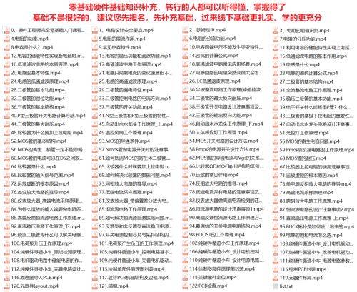专属基础铺垫:报名即开通 15 天硬件基础视频课,用初中物理知识讲解电阻、电容、MOS 管等核心内容,零基础也能听懂。
