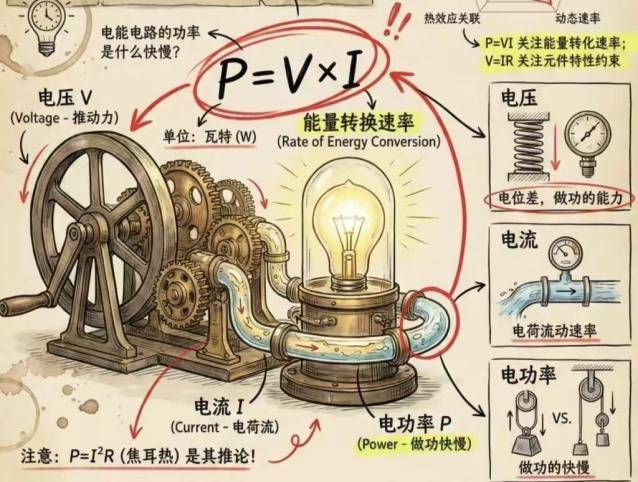 由欧姆定律(From Ohm's Law) U=IR ,代入功率公式(Substituting into the power formula ) P=UI,可得:P=UI=(IR)⋅I=I2R ;同理(Similarly, substituting ),将 I=U/R 代入功率公式:P=UI=U⋅U/R = RU 2