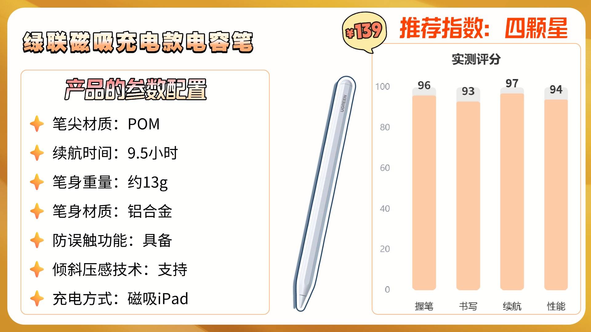 推荐品牌型号7、绿-联磁吸充电款电容笔