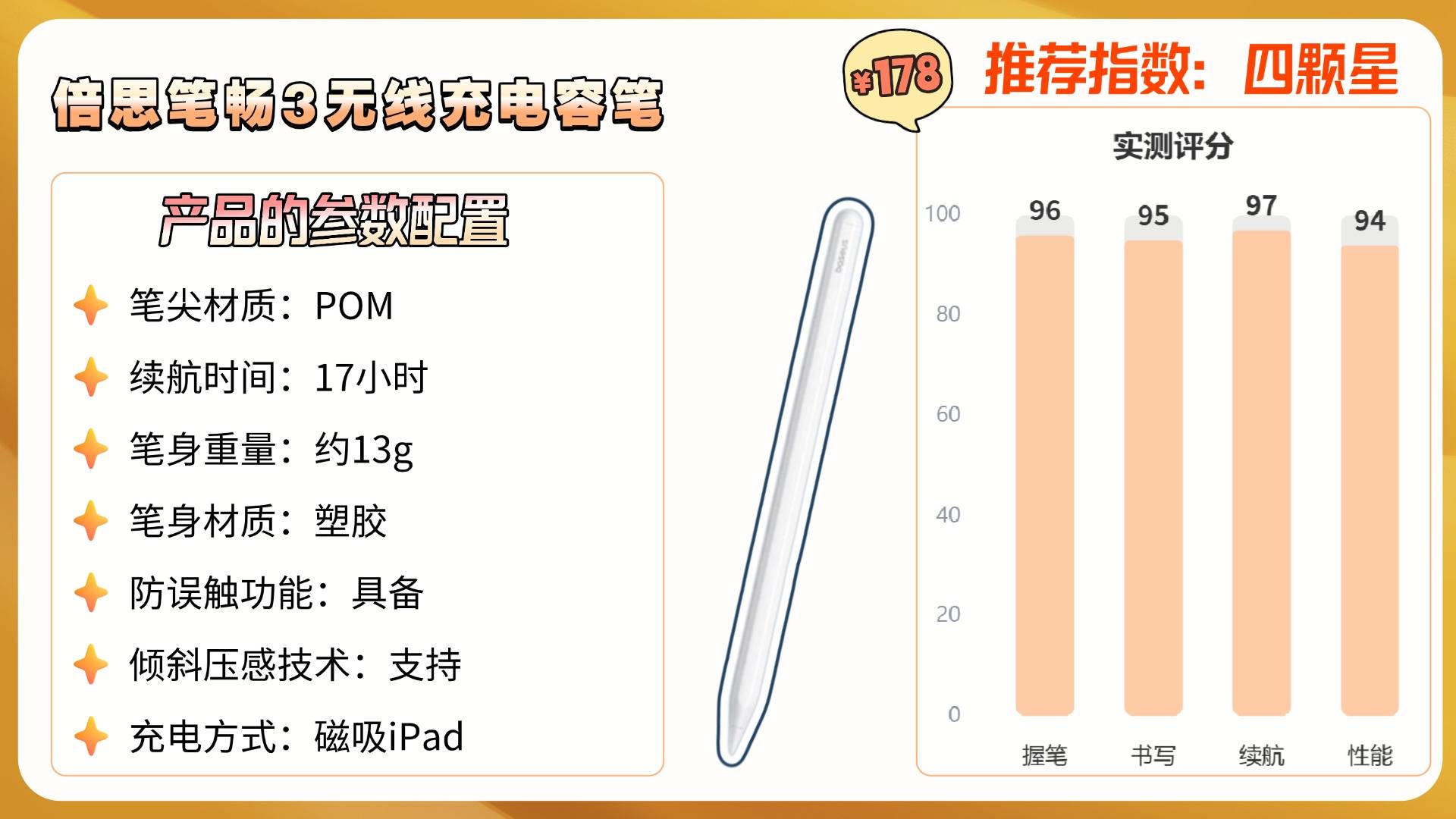 推荐品牌型号4、倍思笔畅系列3无线充电容笔