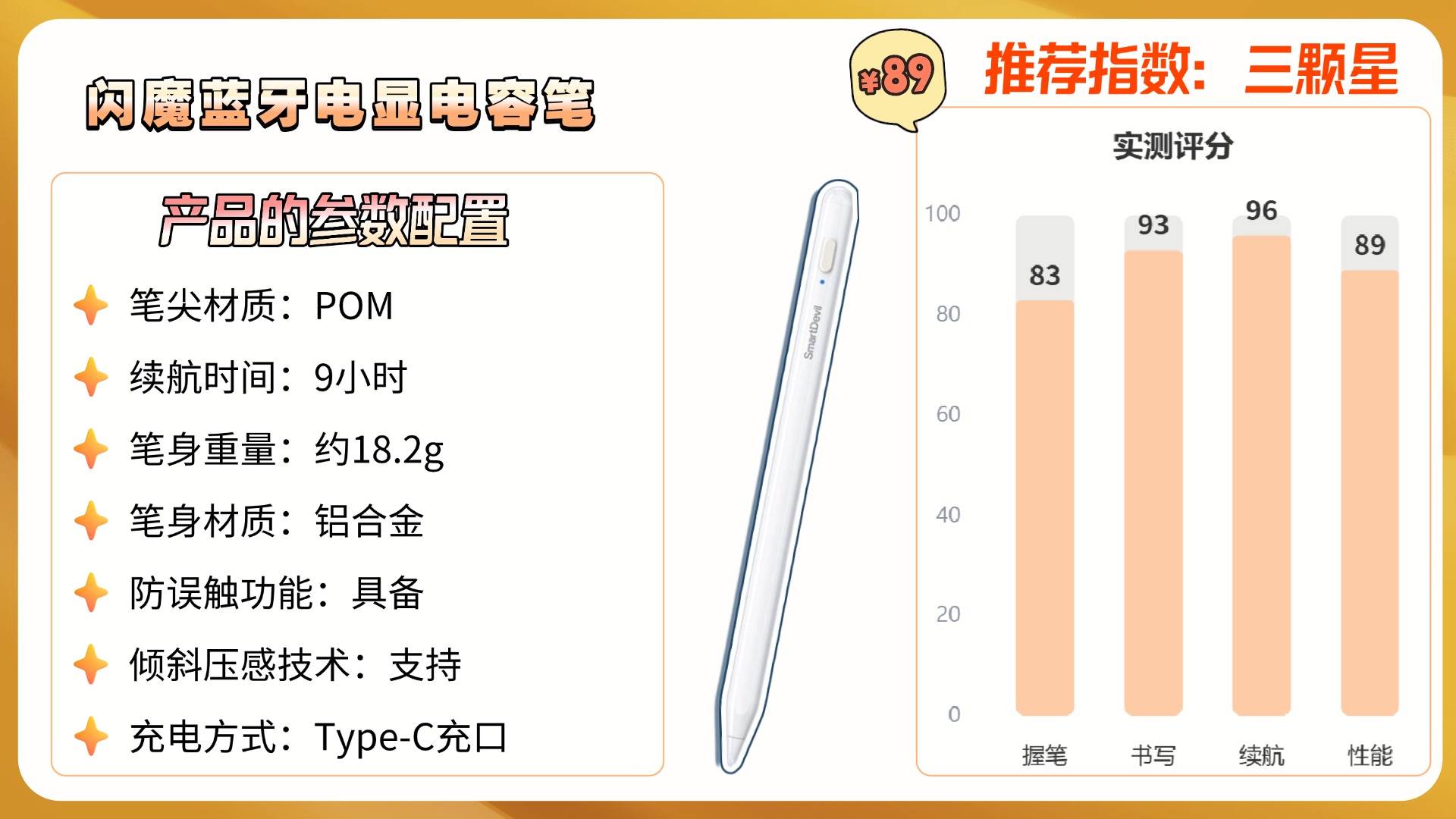 推荐品牌型号9、闪-魔蓝牙电显电容笔