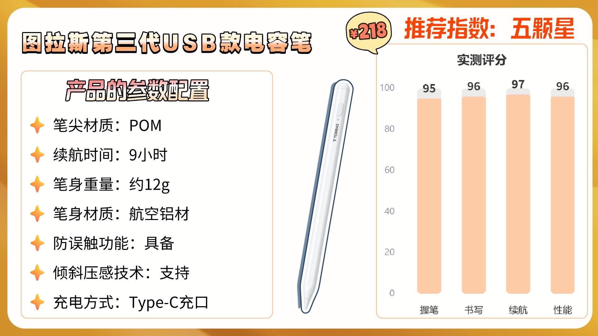 推荐品牌型号5、图-拉斯第三代USB款电容笔
