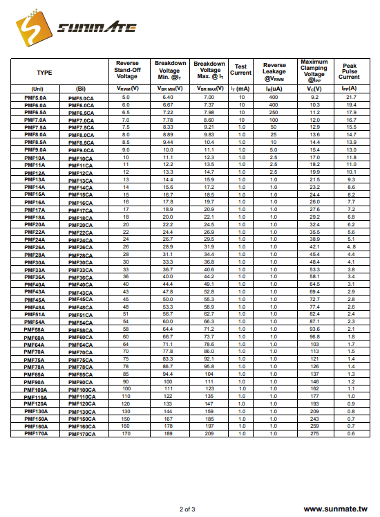 产品名称:PMF150A单向TVS瞬态抑制二极管