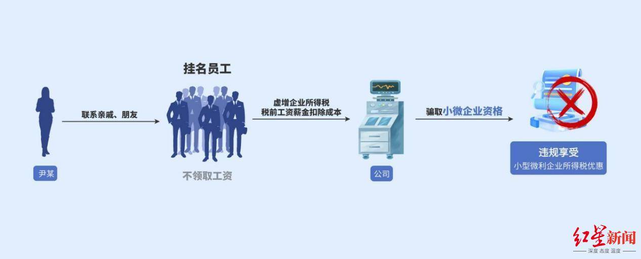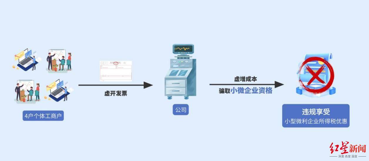 在尹某的一番违法操作下,仁远医疗与4户个体工商户制造了虚假的策划服务业务,由4户个体工商户进行虚开发票,虚增仁远医疗经营成本,将仁远医疗年度应纳税所得额控制在300万元以内,从而获取享受小型微利企业所得税优惠的资格。按照当时的规定,即“小型微利企业年应纳税所得额不超过100万元的部分,减按2.5%的实际税率缴纳企业所得税”,该公司将本应适用25%的企业所得税税率经过“成本调控”成2.5%,以达到少缴税款的目的。