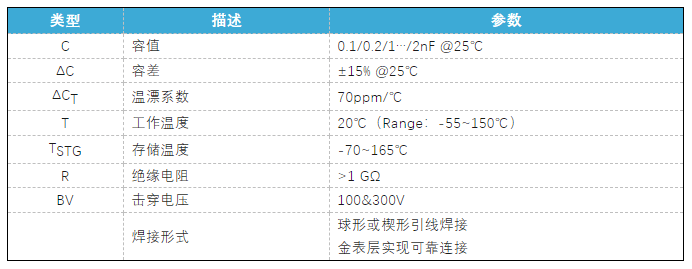 SW-MIM硅电容采用平面薄膜沉积和图形化工艺,薄膜工艺使其具有高精度和良好的频率特性,具有高精度,小体积,低温漂系数,高稳定性等优势。