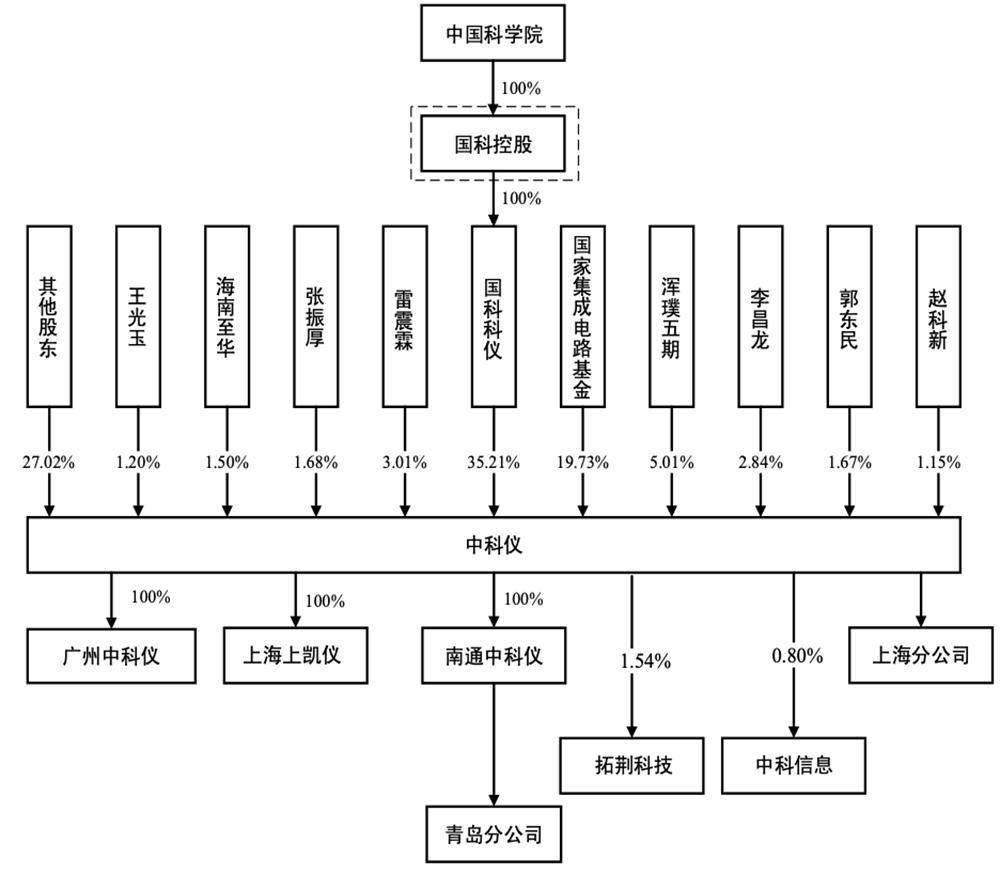 中国科学院控股有限公司(简称“国科控股”)持有国科科仪100%股权,通过国科科仪控制中科仪35.21%股份,是中科仪的实际控制人。中国科学院持有国科控股100%股权。