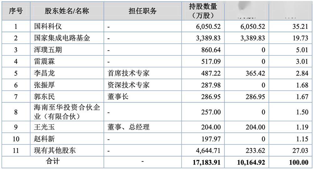 持有中科仪5%以上股份的股东还包括:国家集成电路基金,持股19.73%;浑璞五期,持股5.01%。
