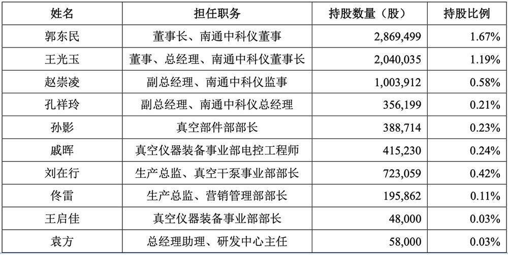 截至2025年6月9日,中科仪董事、监事、高级管理人员及其近亲属持股情况及该等股份截至招股书签署日的限售情况如下: